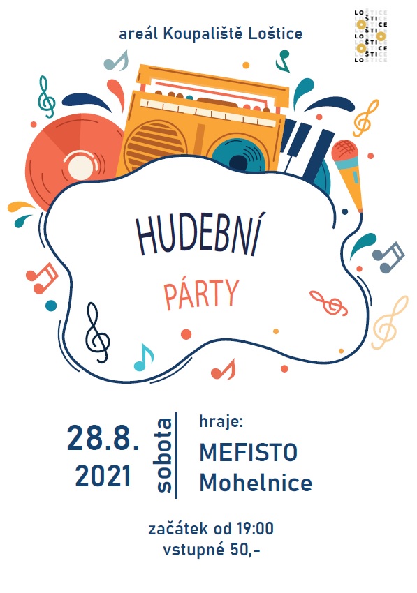V sobotu 28. 8. 2021 od 19 hod. - areál koupaliště Loštice - hudební párty, hraje Mefisto.