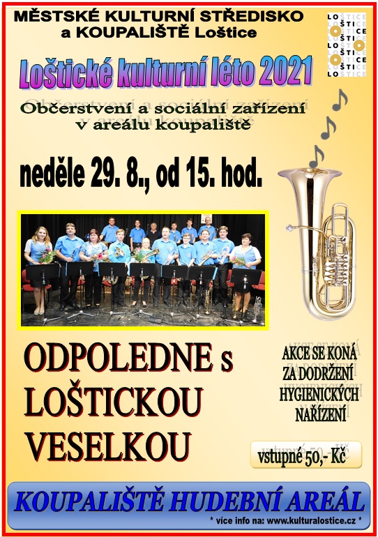 V neděli 29. 8. 2021 od 15 hod. - areál koupaliště Loštice - odpoledne s Loštickou veselkou.