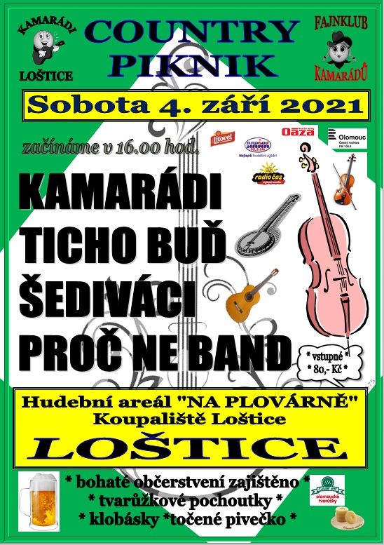 V sobotu 4. 9. 2021 od 16 hod. - areál koupaliště Loštice - country piknik.