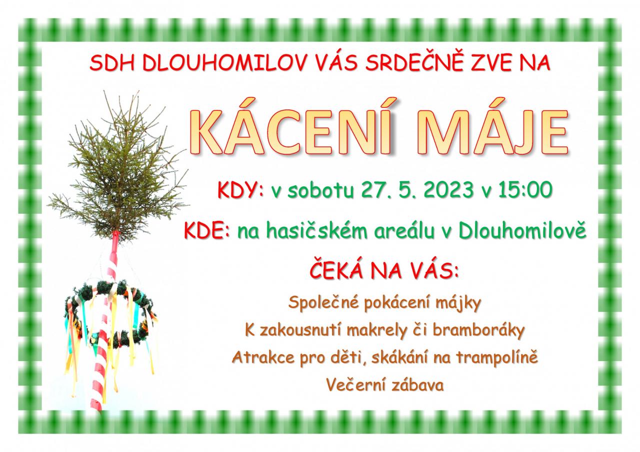 SDH Dlouhomilov Vás srdečně zve na Kácení máje v sobotu