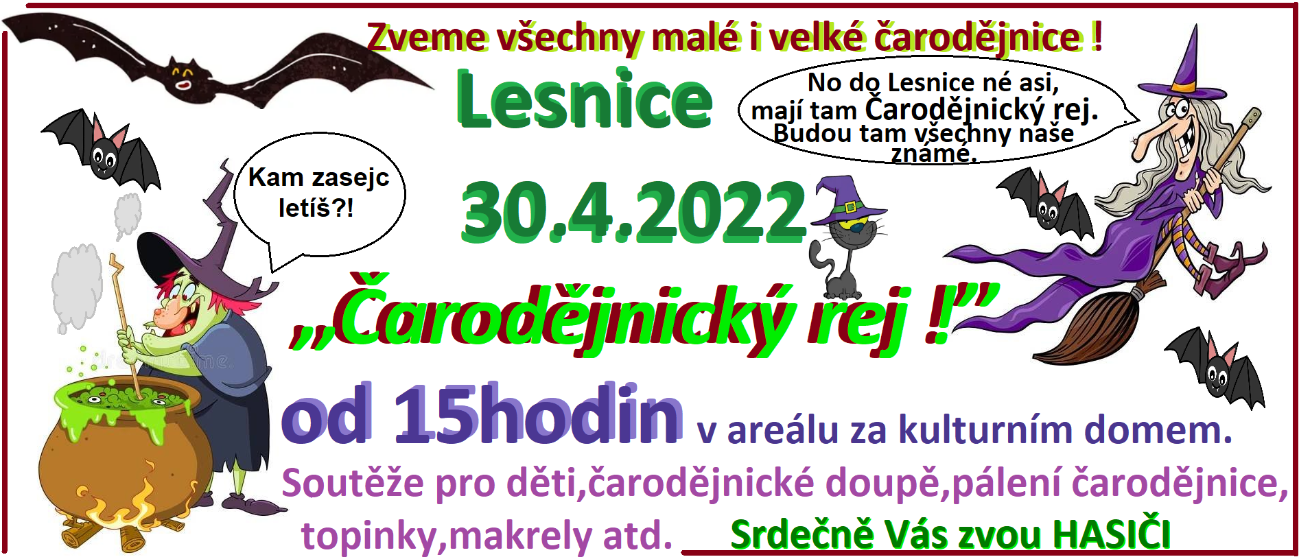 SDH Lesnice pořádá v sobotu 30. 4. 2022 od 15 hod. v areálu